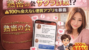 詐欺出会い系アプリ熟密の会はサクラ詐欺出会い系アプリ?会えない実態と高額料金の危険性を徹底検証 熟密の会はサクラ疑惑が強い出会い系アプリです。実際に使って分かった会えない理由や高額料金の実態、注意点を詳しく解説します。 2026.01.31詐欺出会い系アプリ