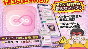 詐欺出会い系アプリConnect(コネクト)の評判・口コミ。1通360円の高額課金と出会えない実態を検証 Connect(コネクト)は出会い目的で使えるアプリなのか?実際に検証した結果、1通360円の高額なメッセージ課金や一般ユーザーと出会えない実態が判明。利用前に注意点を解説します。 2026.01.30詐欺出会い系アプリ