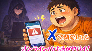 出会い系攻略法Twitter(X)で実際に「オンラインパパ活」してアマギフ10,000円渡したリアルな結末がヤバイ! Twitter女子 オンラインパパ活(割り切り)始めました! 1時間1万円でアマギフ先払い限定! 何でもします! ジャイ吉 時代は、オンラインのパパ活か…。アマギフ1万円で、1時間、... 2026.02.20出会い系攻略法
