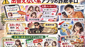 詐欺出会い系アプリ出会えない系アプリの詐欺手口とは?本当に出会える出会い系の特徴を解説! 女性会員が全員サクラで出会えない「出会えない系アプリ」の実態を徹底解説。アプリストアから消えない理由、儲けの手口、法に触れないやり口を暴露。本当に出会える出会い系の特徴も紹介! 2026.02.20詐欺出会い系アプリ