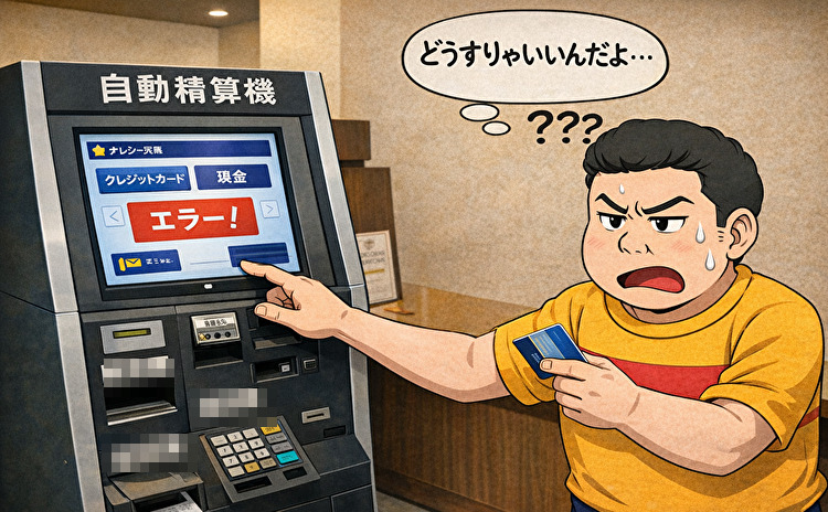 そして自動会計システムに千円札が不足している時にお釣りの千円札の3枚目以下4枚目にカタカタといってエラーをおこし、フロントまでご連絡ください♪と明るい声で言われるのも腹立つ!そしてフロントから人が来てお釣りを手渡しでもらうという経験をジャイ吉は何度もしてきた。