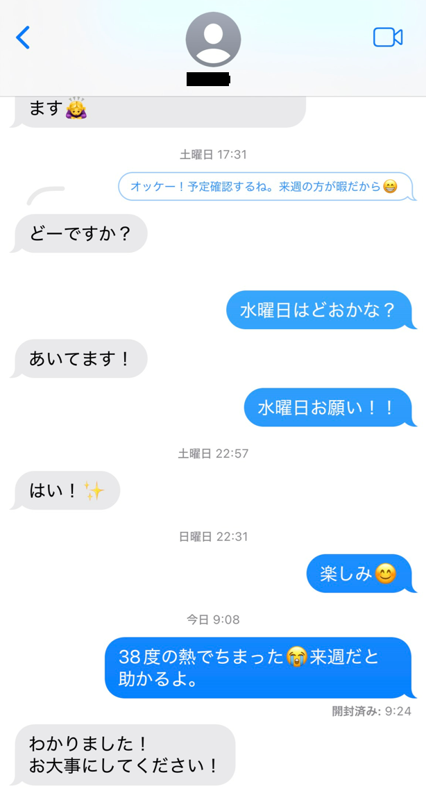 21歳の女性とはSMS(ショートメッセージ)でやり取りしているんだけど実際のやり取りがコレ↓