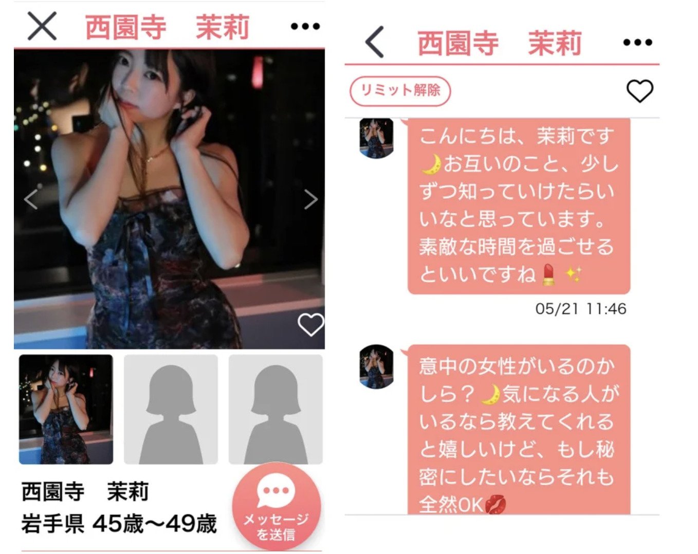 以前、「西園寺 茉莉」なんて珍しい名前の女性を詐欺アプリで見かけた事もある。
