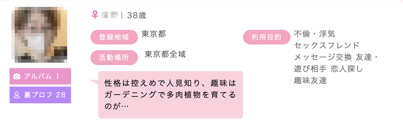 このカテゴリーはセフレ希望の人妻がメインユーザーなので、一度きりでなく、キープできる相手を探している人にも推せる。