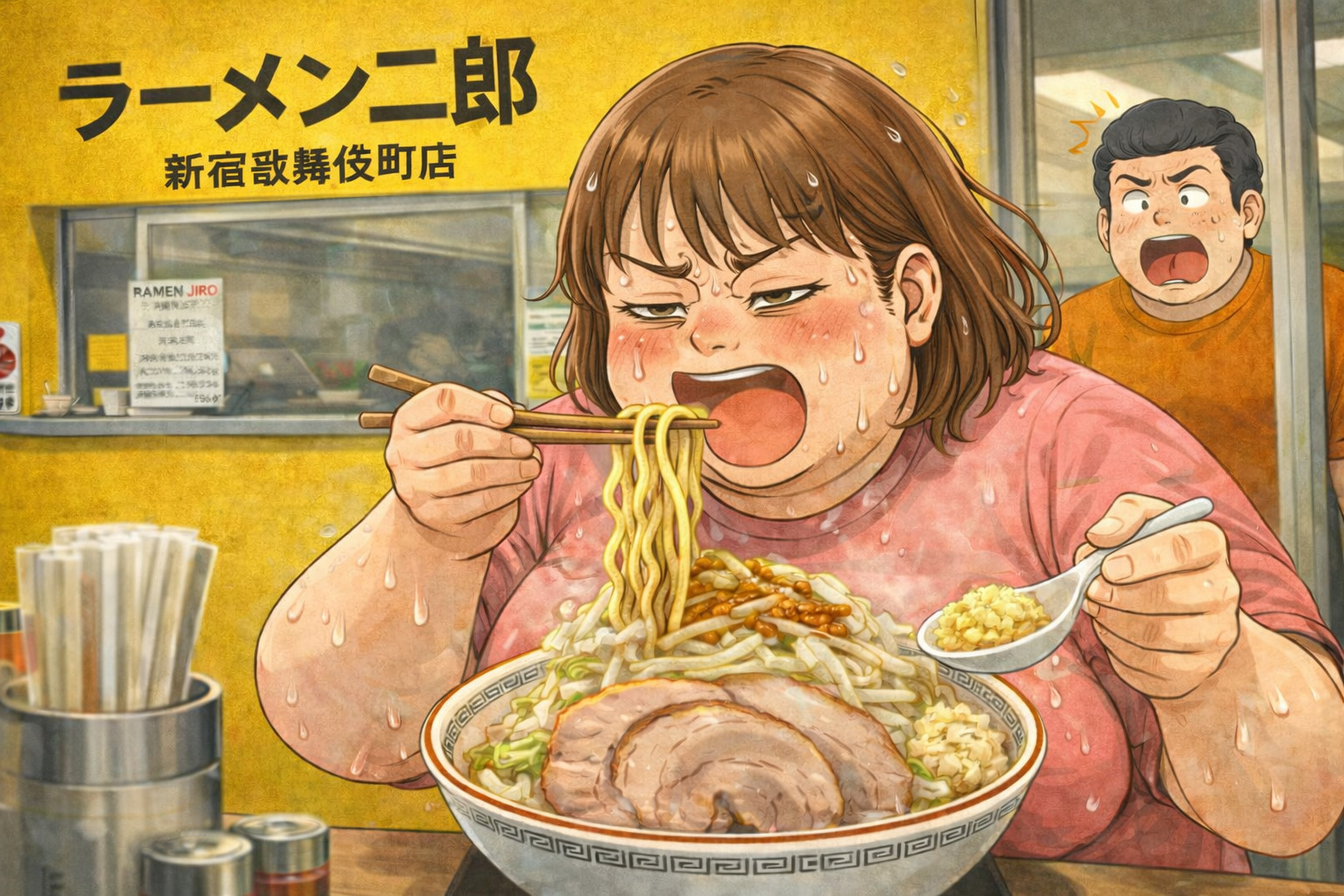 会った女性はまさかのデリヘル嬢でラーメン二郎歌舞伎町店に週4で通い、別の二郎(目黒店)などに遠征しているかなりの強者だ。